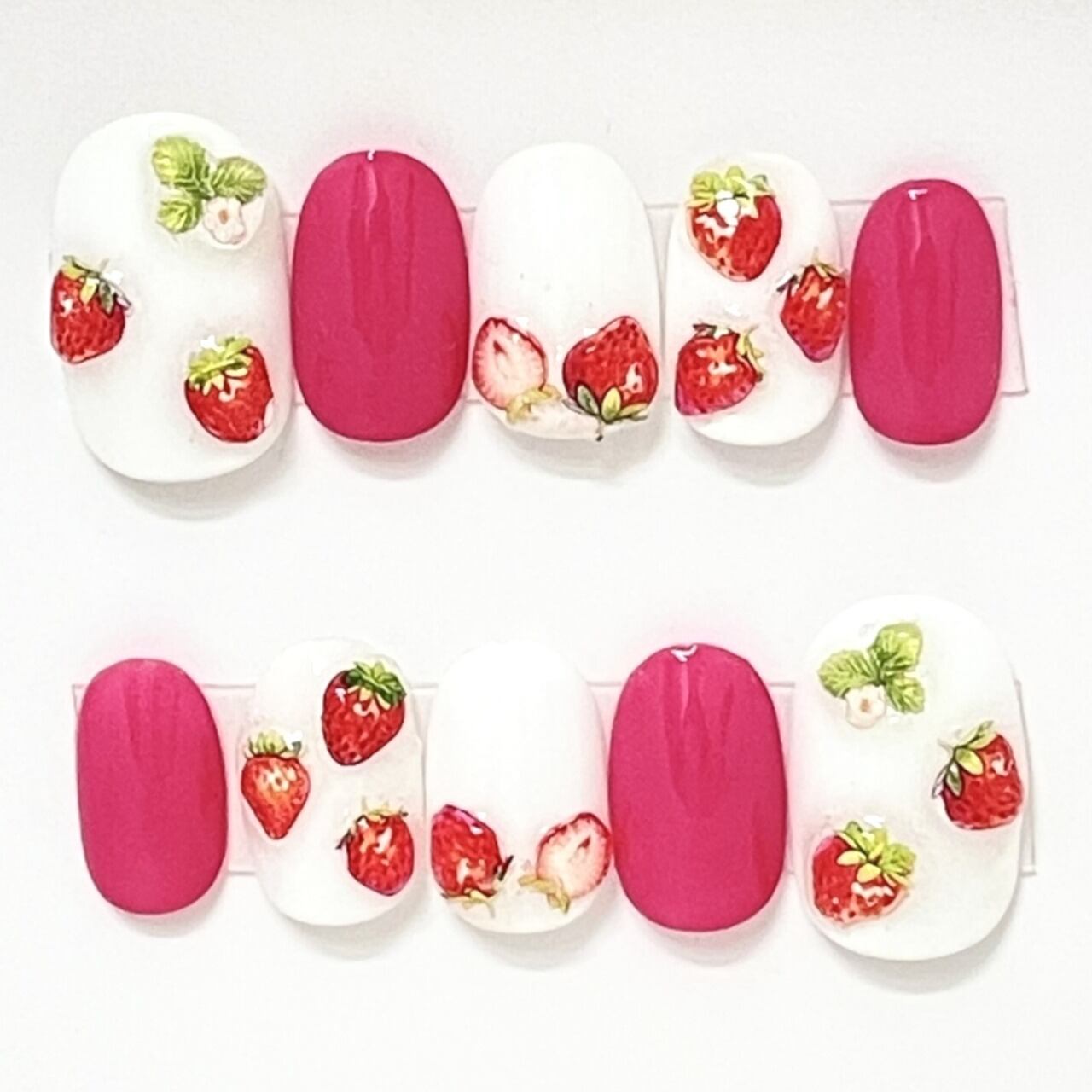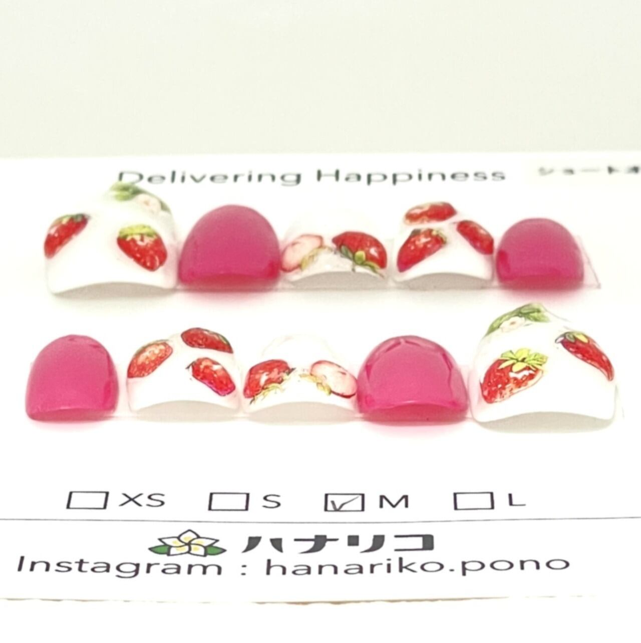 #ネイル #ネイルチップ #つけ爪 #ハナリコハンドメイド #ハナリコネイル #ピンク #白 #いちご #かわいい #お出掛け #デート #福祉ネイルスクール #hanariko.pono #ハナリコ #就労継続支援B型事業所