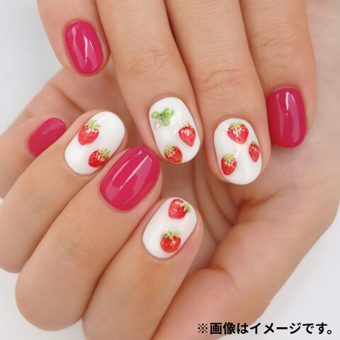 まるで指先に春を摘んだような、甘くてかわいいいちごネイル。