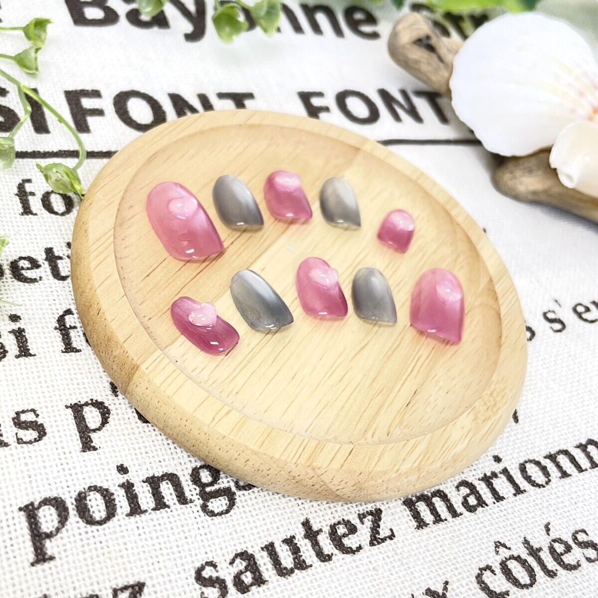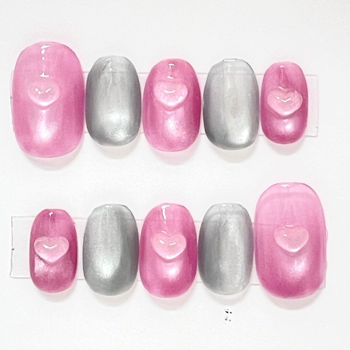 #ネイル #ネイルチップ #つけ爪 #ハナリコハンドメイド #ハナリコネイル #ピンク #グレー #マグネットネイル #ハート #ガーリー #福祉ネイルスクール #hanariko.pono #ハナリコ #就労継続支援B型事業所