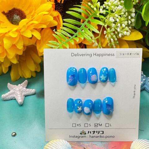 透きとおる海をそのまま閉じ込めたような、爽やかで夏らしいネイルチップです。