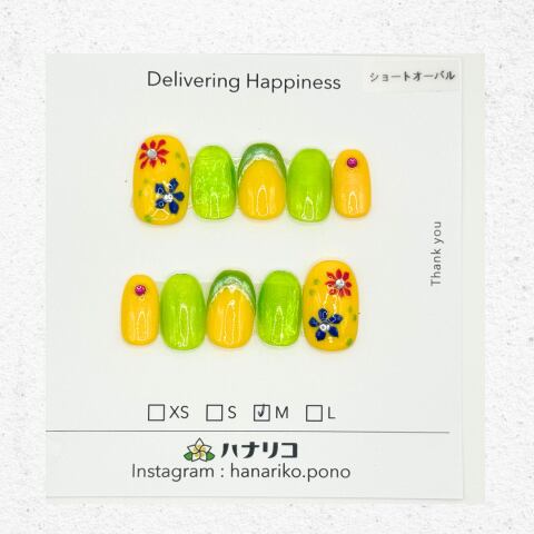 【 H-32】イエローフラワー ショートオーバル サイズM