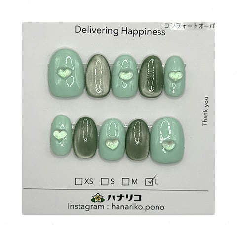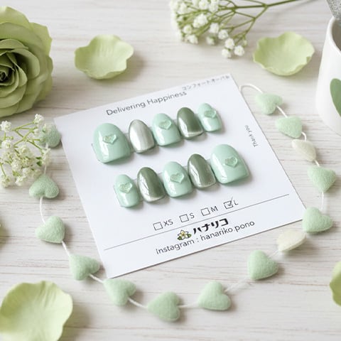 【R-41】パステルグリーンハートネイル コンフォートオーバルLサイズ