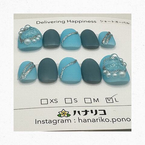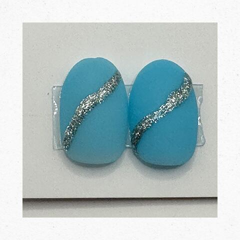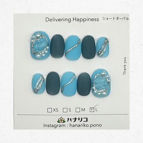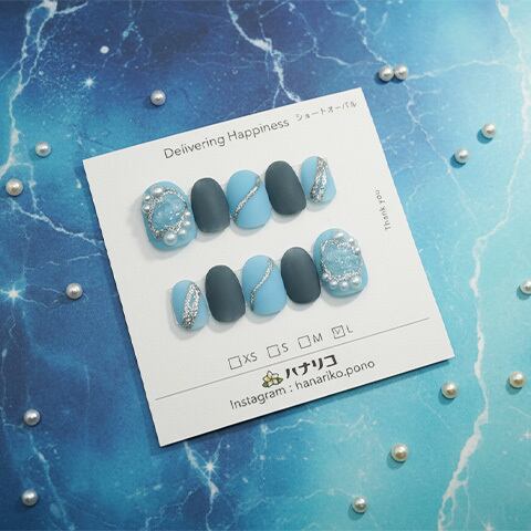【R-58】海ネイル マットブルー ショートオーバル Mサイズ