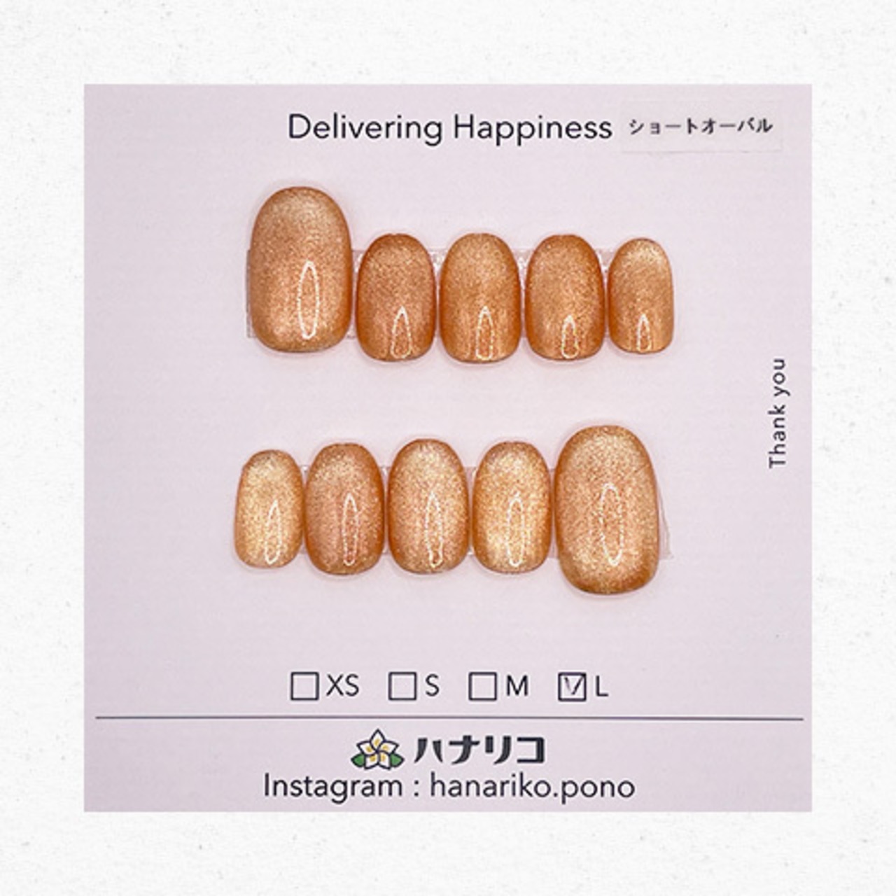 ・オレンジカラーのマグネットネイルで奥行きのある輝き
