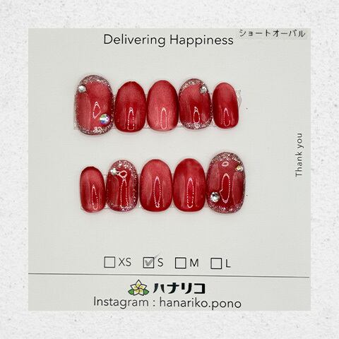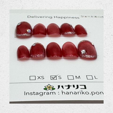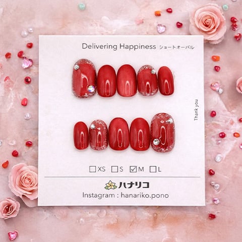 深みのあるレッドカラーに、さりげないラメとストーンを添えた華やかなデザイン。