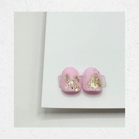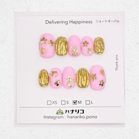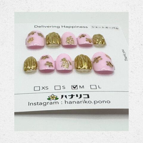 やさしいピンクをベースに、立体感のあるゴールドアートを組み合わせた華やかなデザイン。