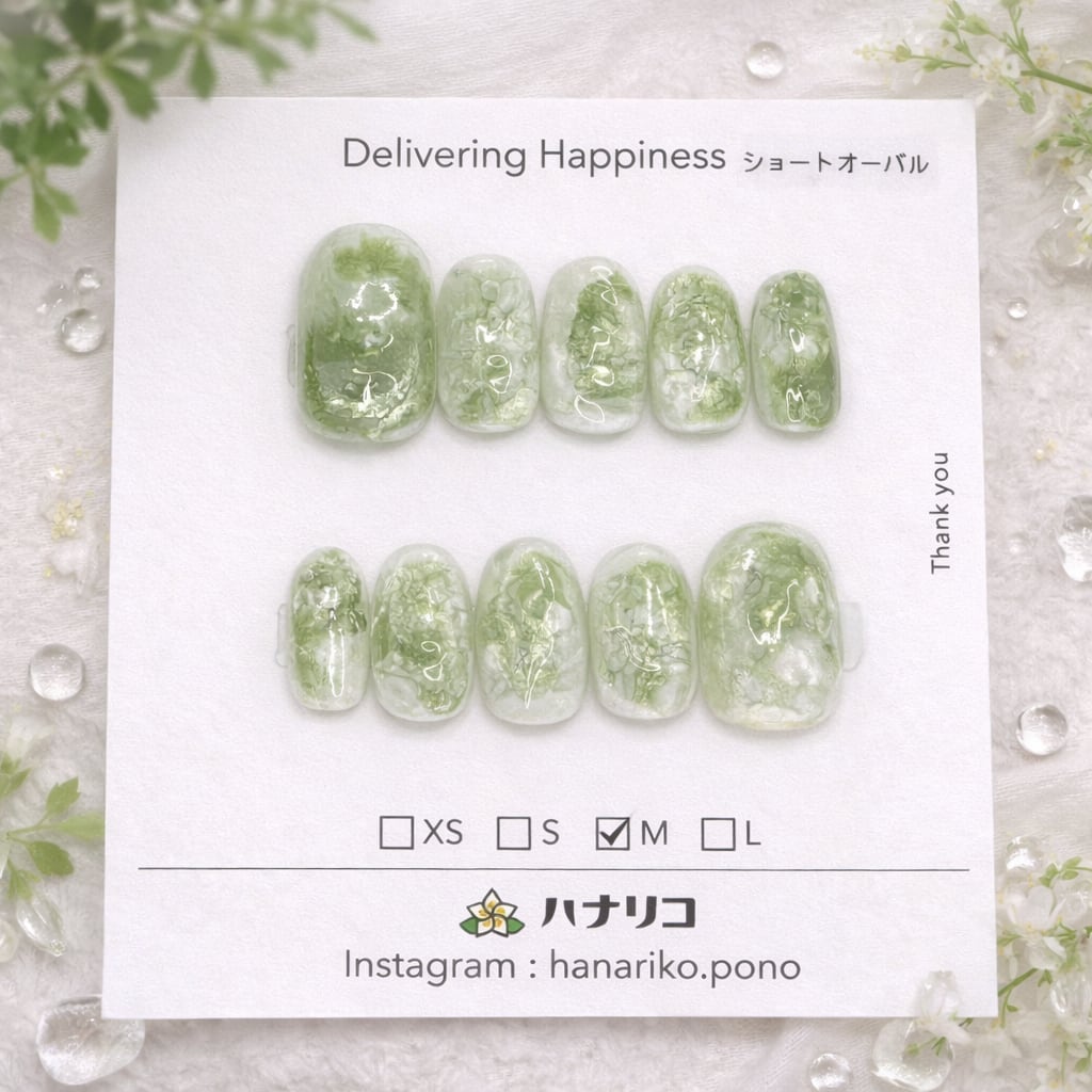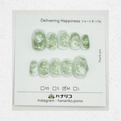 淡いグリーンをベースに、みずみずしい透明感と奥行きを感じさせるニュアンスデザイン。
