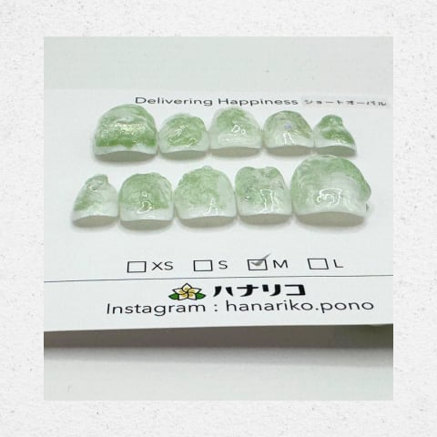【R-72】ホワイトグリーンアイシング ショートオーバルMサイズ