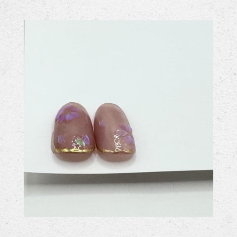 くすみピンクに、オーロラフラワーを散りばめた上品で可憐なデザイン。